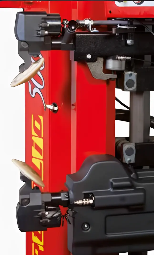 + Bộ đĩa ép tự động với hai đĩa tách mép lốp cao su đối xứng. Các thao tác định vị, căn chỉnh được thực hiện hoàn toàn tự động bởi máy, không còn cần phụ thuộc vào kinh nghiệm của người thợ.