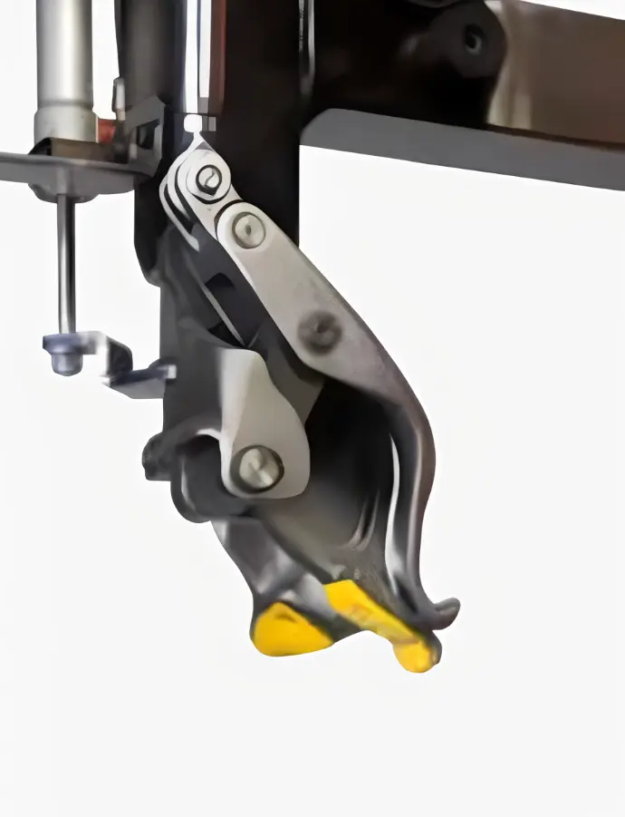 Khả năng vận hành của máy được tối ưu hóa nhờ hệ thống dẫn động mô tơ biến tần 2 tốc độ, cung cấp mô men quay 1100 Nm mạnh mẽ. Đặc biệt, cơ cấu ép lốp sở hữu dải ép tối đa 670 mm và hành trình ép 540 mm với lực ép đạt 7600 N, giúp tách mép lốp dứt khoát mà không gây biến dạng vành. Những ưu điểm công nghệ vượt trội bao gồm: